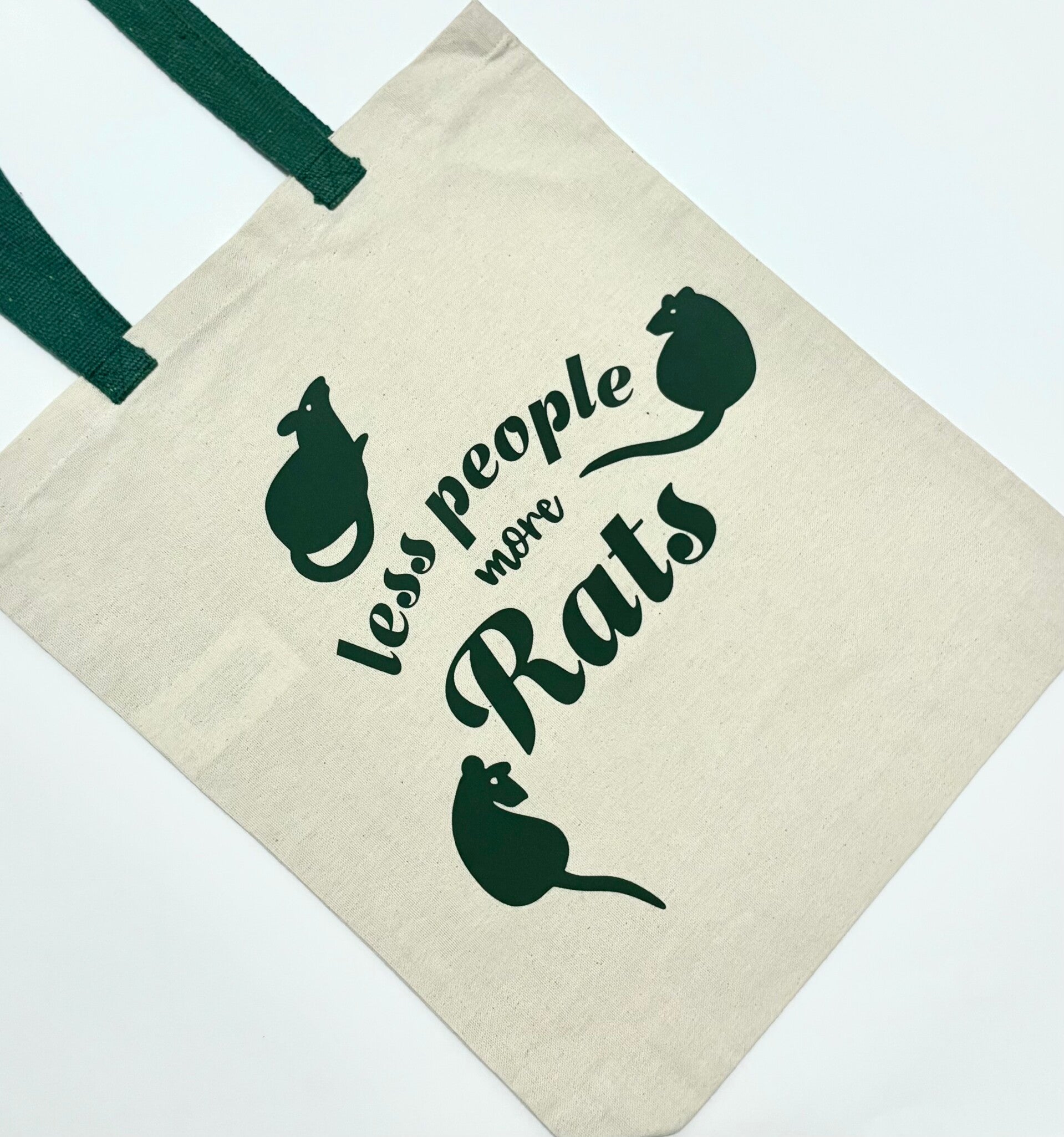 Laat je persoonlijkheid spreken met deze originele totebag met de eigenzinnige opdruk “Less people more rats”! Ideaal voor iedereen die liever tijd met zijn ratten doorbrengt dan met mensen en dat met trots wil laten zien.